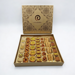 Einzelpreis proEine hochwertige orientalische Gebäckmischung aus verschiedenen Baklava- und Fadenteigsorten, gefüllt mit einer feinen Auswahl an PISTAZIEN, WALNÜSSEN und CASHEWKERNEN. Authentischer Geschmack mit ausgewogener Süße – ideal für Gäste, besondere Anlässe oder als edles Geschenk.