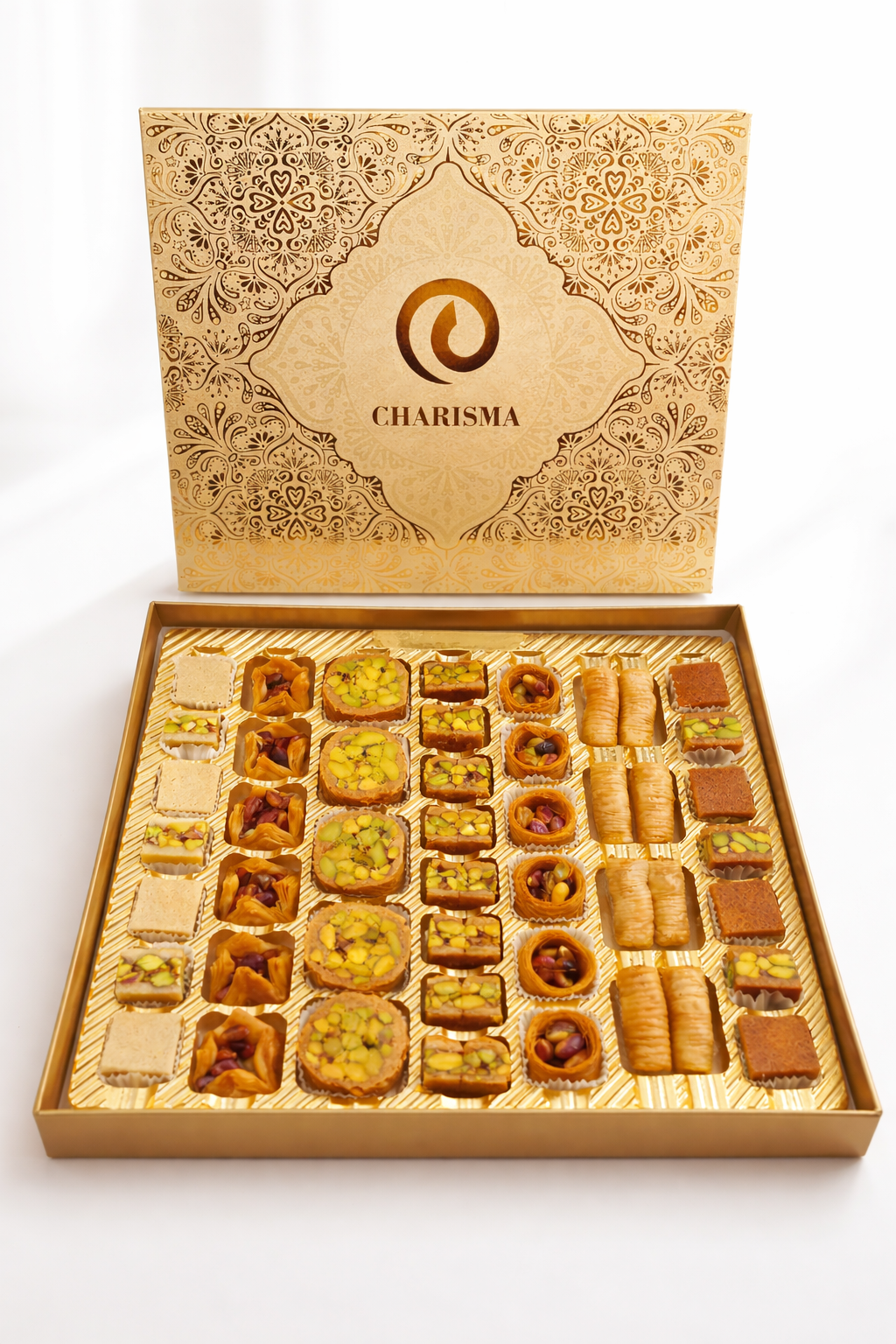 Eine erlesene Mischung aus verschiedenen Baklava- und Fadenteigsorten, gefüllt ausschließlich mit hochwertigen Pistazien. Diese Variante kombiniert klassische orientalische Aromen mit einer feinen Süße – ideal für Gäste, besondere Anlässe oder als Geschenk.