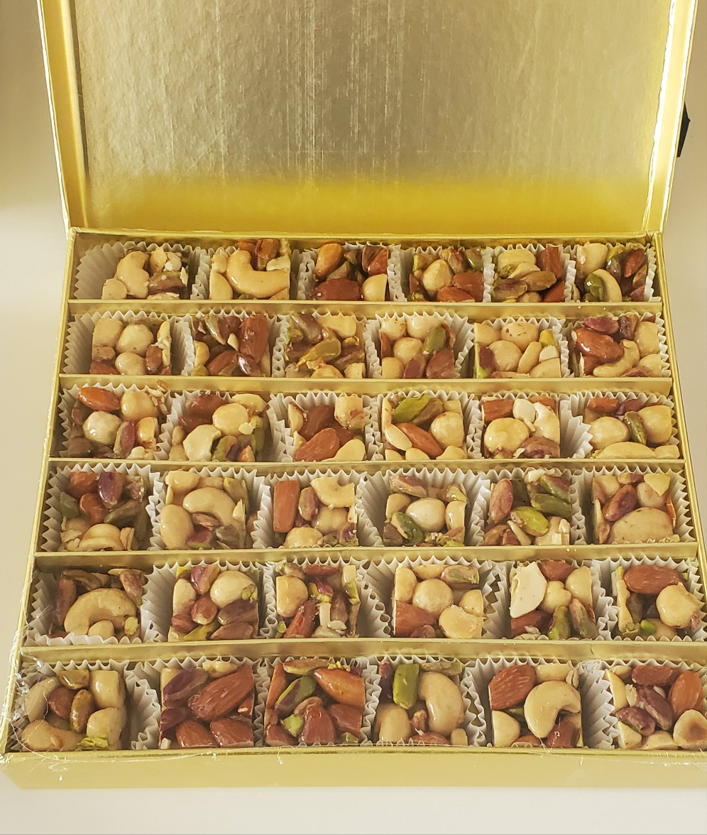 Ingredients: Almonds, hazelnuts, pistachios, wheat flour, ghee (clarified butter), sugar, water.