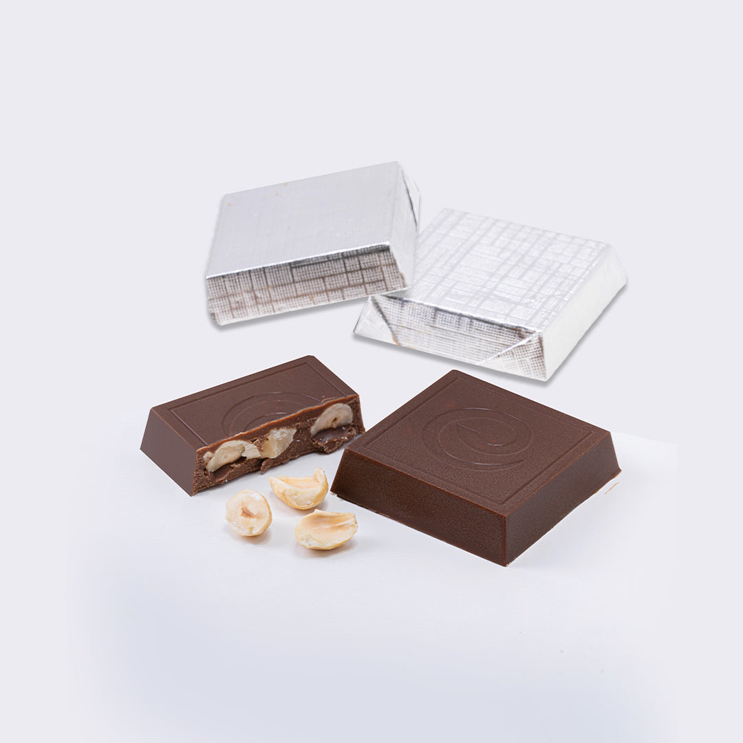 Dark chocolate with hazelnut 4cm x 4cm